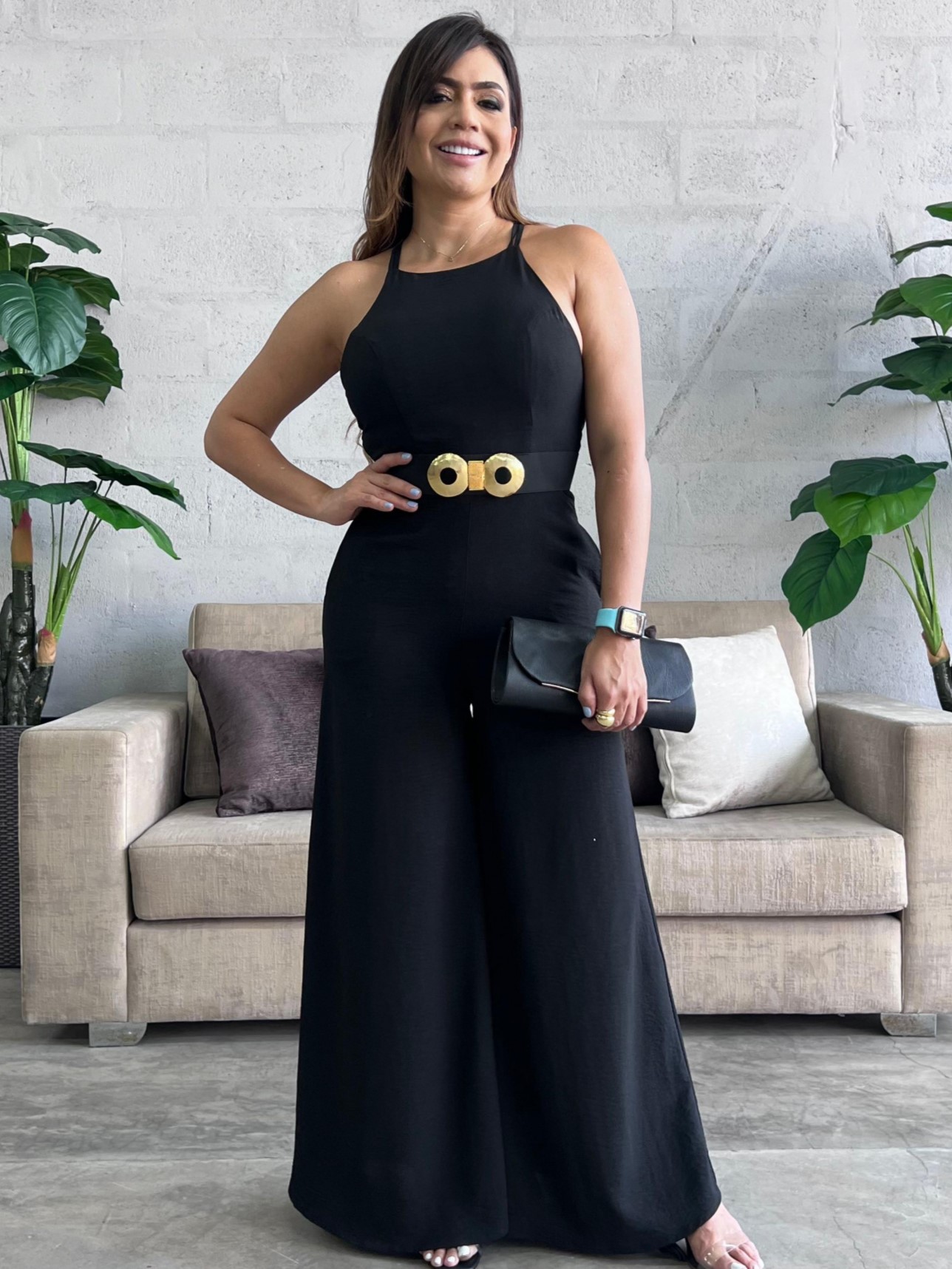La modelo mide 1.80cm y usa una talla L.