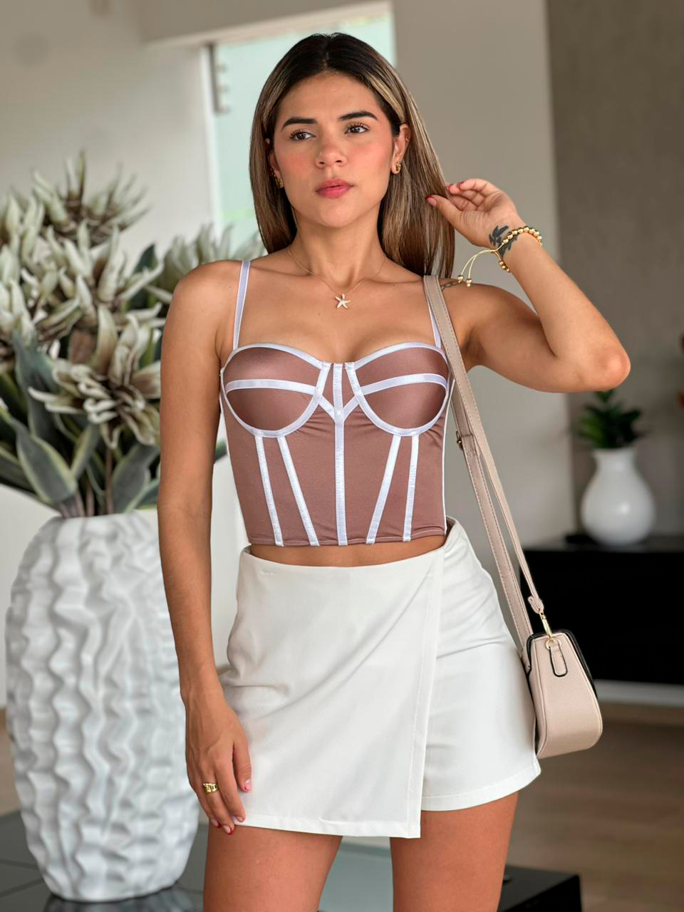 La modelo mide 1.67cm y usa talla S