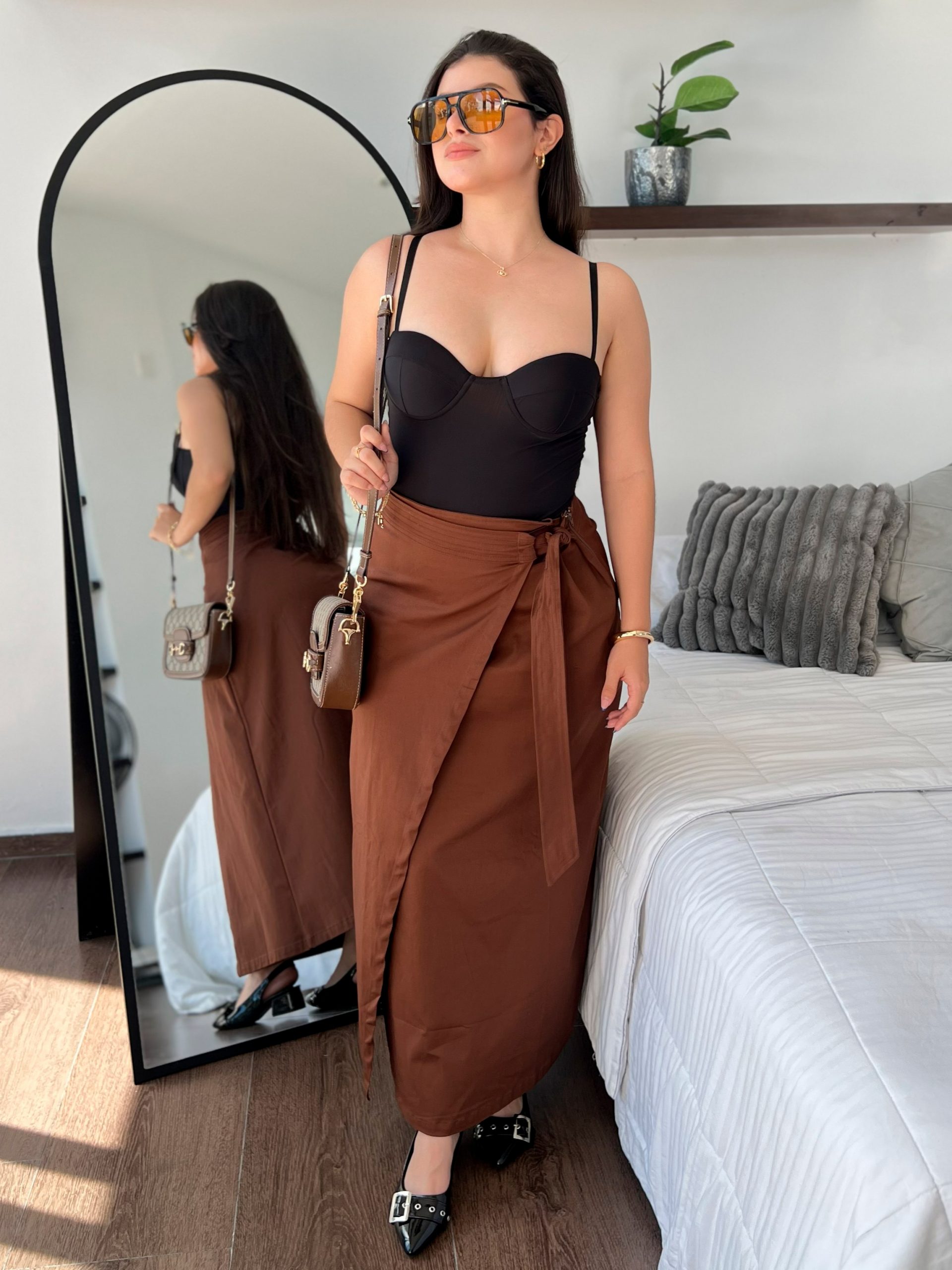 La modelo mide 1.55cm y usa talla M.