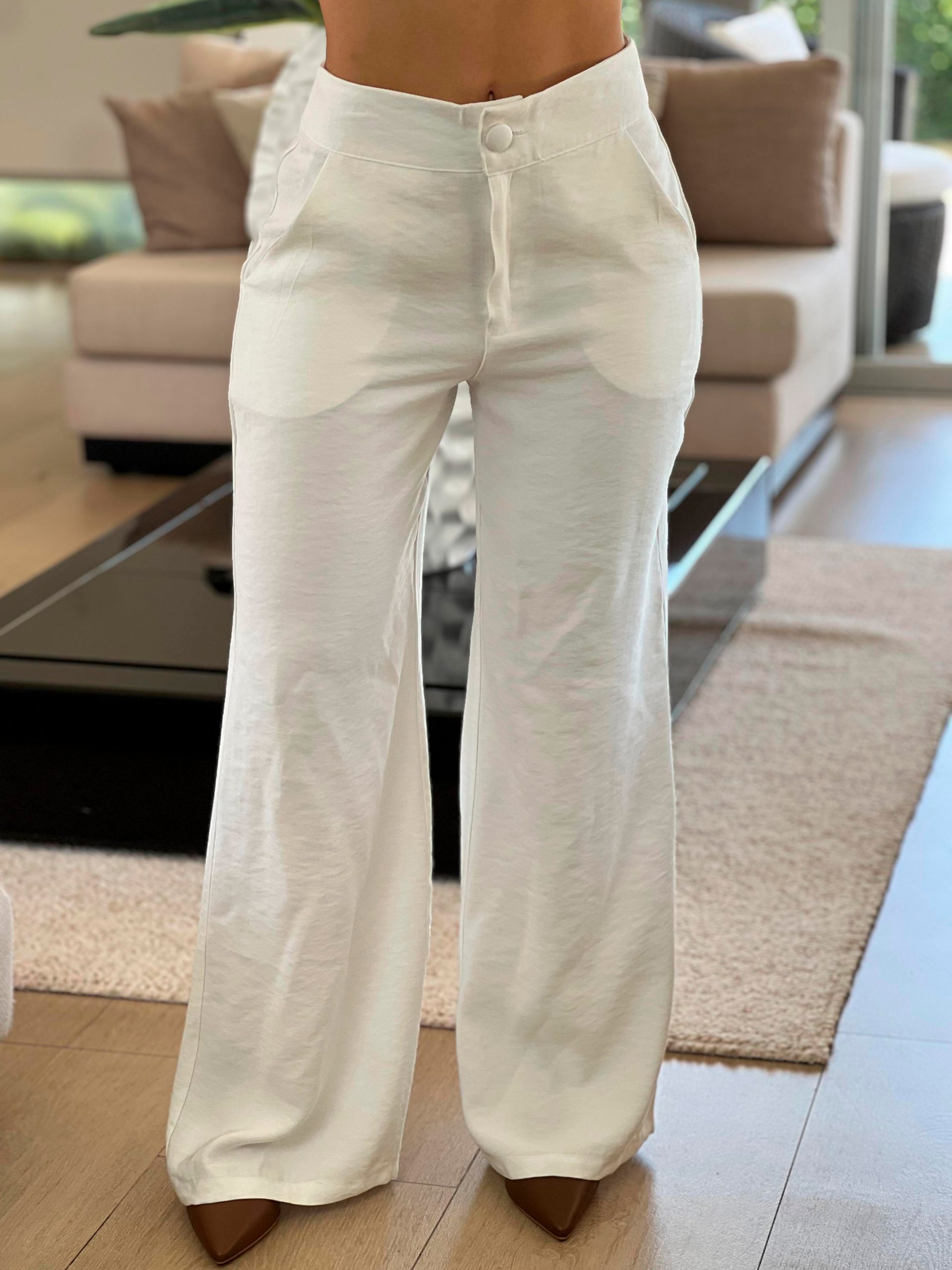 Pantalon largo bota recta, pretina sencillas con bolsillos de delantero, una opción femenina y romántica con detalle de sesgos y botón forrado, cortes con inspiración oriental, silueta suelta, se puede utilizar a juego con blusa deseo