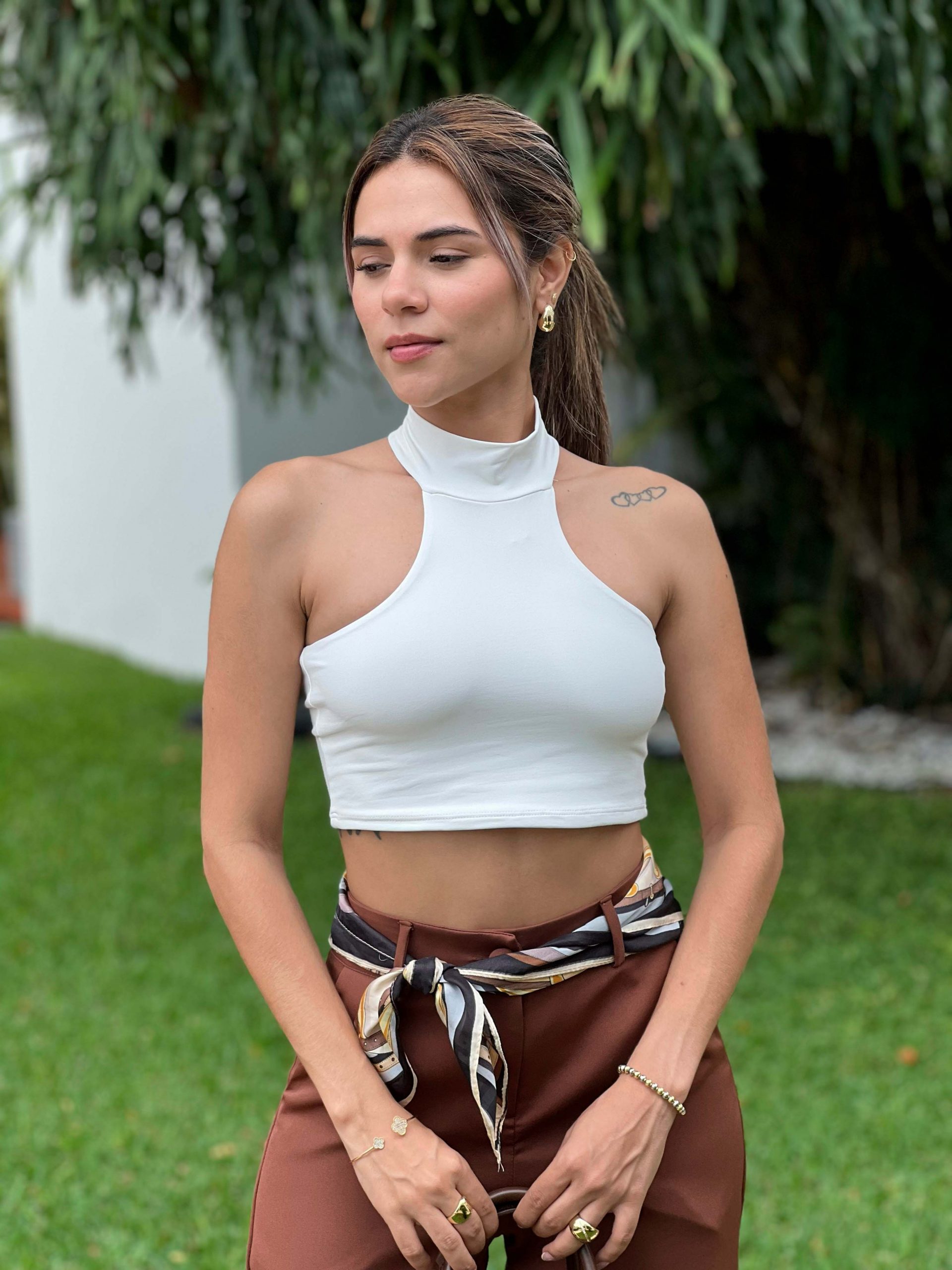 Top halter de cuello alto, fit ajustado y silueta limpia que estiliza full la parte superior. Es suave, cómodo y perfecto para elevar cualquier look, desde pantalones sastre hasta denim. Básico, pero en modo protagonista.